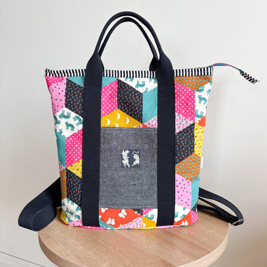 Piece a colorful patchwork panel at Glue & Stitch Studio - perfect for adding a fun pop to your next handmade bag.