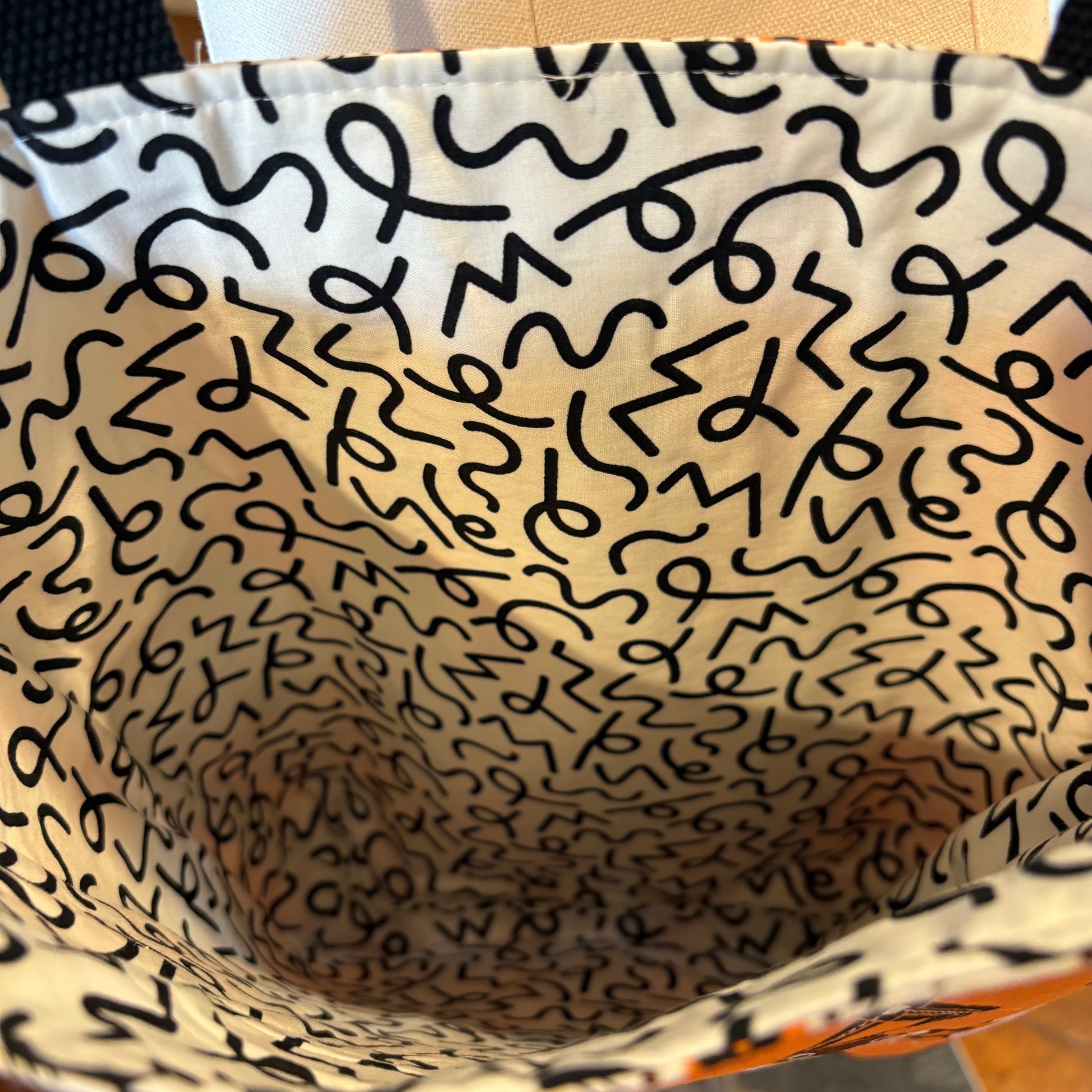 The Glacier Bay Harbor Seal quilted tote is a cheerful blend of bold color and playful design. Made from Organic Cotton Poplin featuring Charley Harper’s Glacier Bay Harbor Seals, this tote captures the charm of nature with a modern, geometric twist. The vibrant orange background highlights the whimsical seal pattern, while the improvisational quilting adds texture and movement to every panel. Fully lined with a coordinating print and finished with sturdy black straps, this quilted tote is as functional as it is fun—perfect for carrying your books, market finds, or creative projects wherever you go.