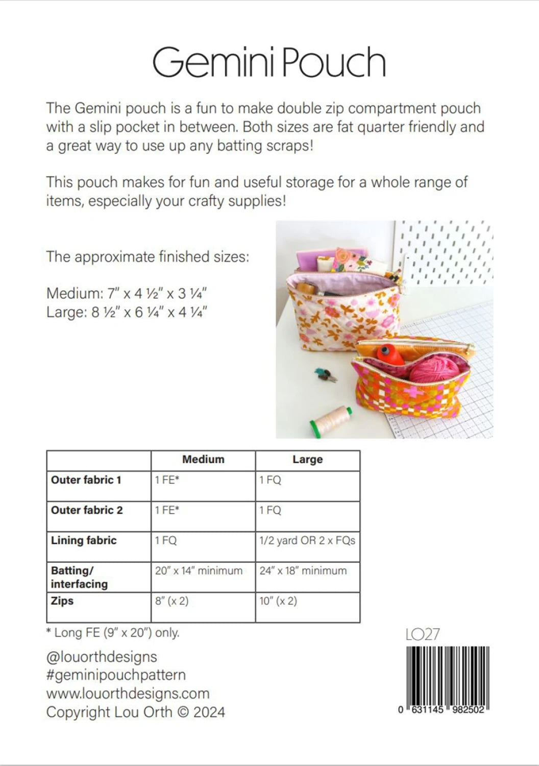 Both sizes are fat quarter friendly and designed to help you use up batting scraps, making this an excellent stash-busting project. The Gemini Pouch is perfect for storing craft supplies, sewing notions, or everyday essentials, and it makes a thoughtful handmade gift, too.