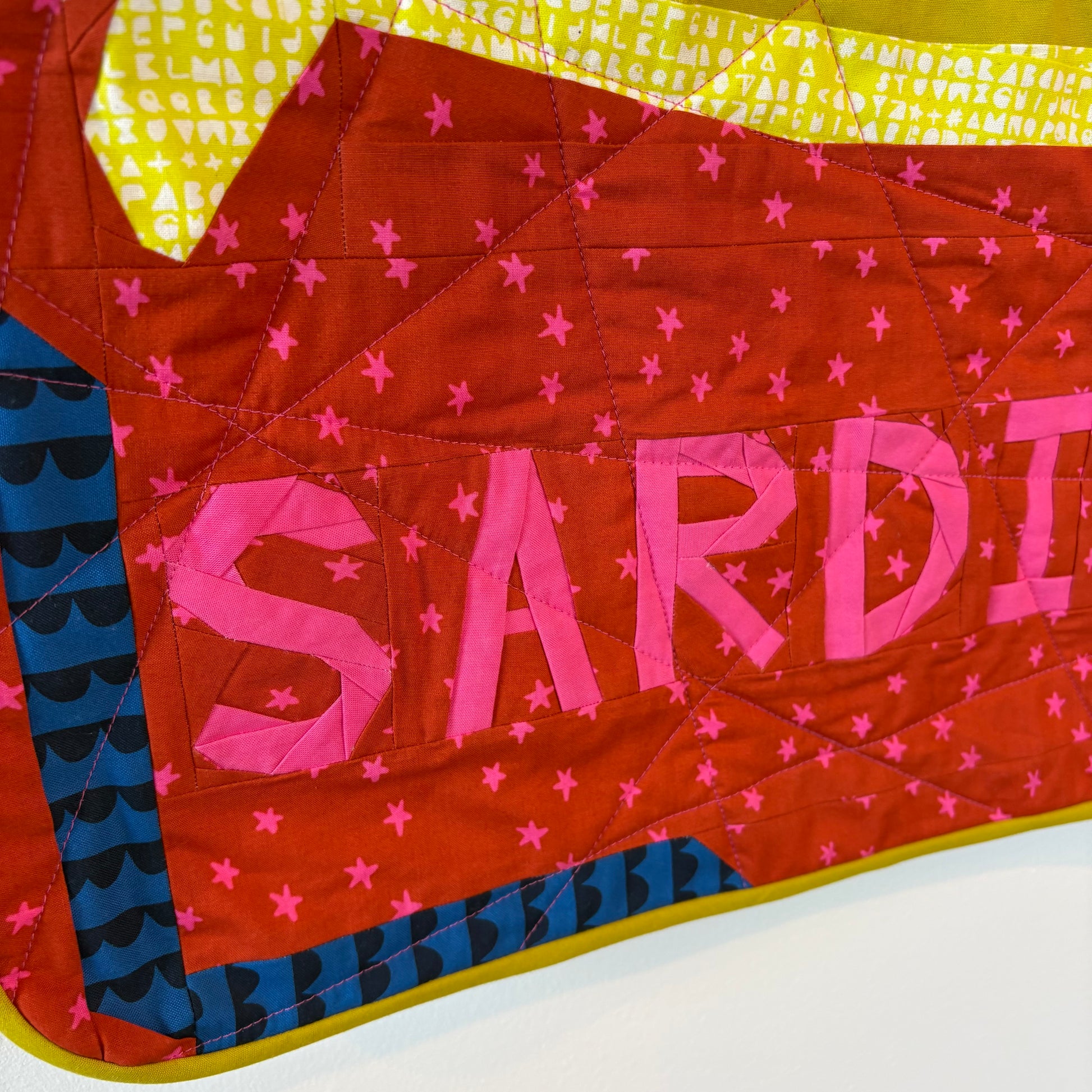 This foundation paper pieced sardine tin wall hanging is a bright, bold piece of quilted art made purely for fun. Playful sardines, graphic star details, and vibrant color choices come together in a design that feels lighthearted and a little bit silly in the best way.