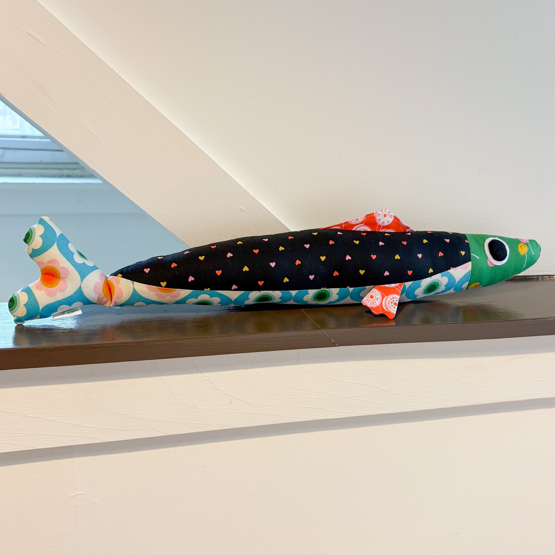Gladys is handmade using thoughtfully chosen fabrics, blending playful prints with a clean, modern shape. At 24 inches long, they make a bold and slightly unexpected statement, perfect for a studio shelf, sewing room, or anywhere that could use a little humor and charm. Whether you are collecting them all or just bringing home one, each sardine has its own name and personality, making them feel like part of a quirky little crew.