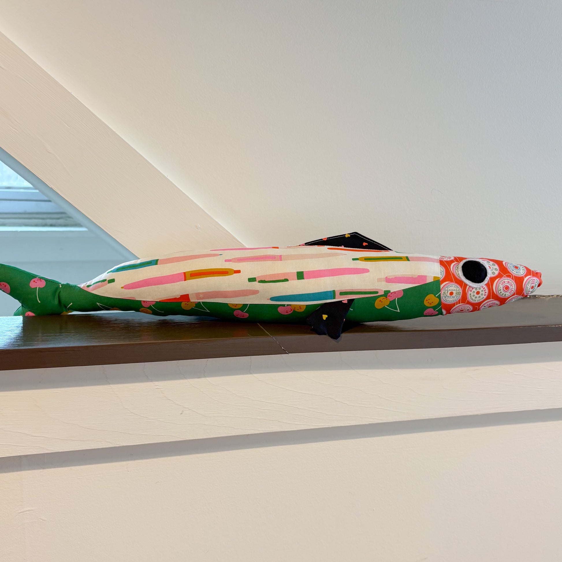Milton is handmade using thoughtfully chosen fabrics, blending playful prints with a clean, modern shape. At 24 inches long, he makes a bold and slightly unexpected statement, perfect for a studio shelf, sewing room, or anywhere that could use a little humor and charm. Whether you are collecting all of them or just bringing home one, each sardine has its own name and personality, making them feel like part of a quirky little crew.